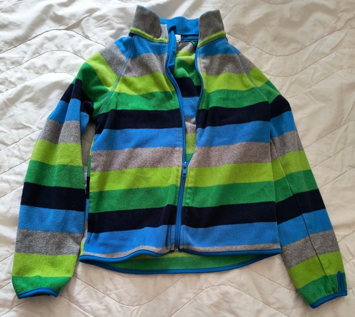 H&M sport duks za 6-8 godina (122/128). Mekan i moderan, bez ikakvih mana. Odlično urađen, veselih boja, sa otvorima za palac na rukavima, na zip. Dužina napred 46, nazad 50 cm. Dužina rukava od ivice kragne 58 cm.