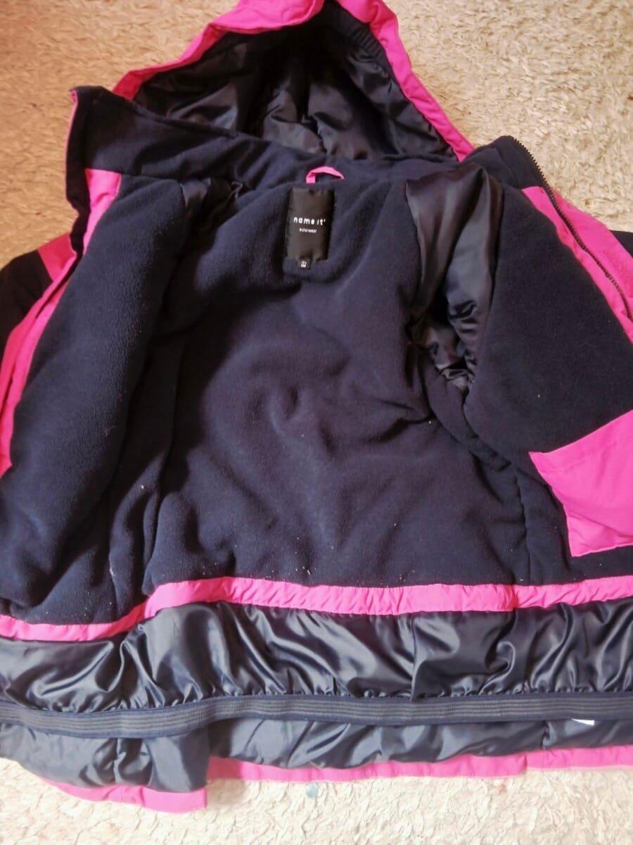 Name it izuzetno topla i debela zimska jakna vel 152! Uslikano blago ostecenje na predzadnjoj slici u vidu malo izvucenih niti ( moze se srediti). Nije vidljivo toliko( zadnja slika).