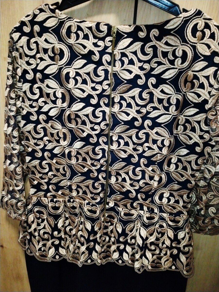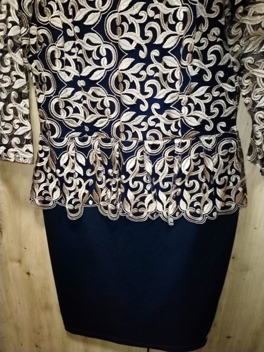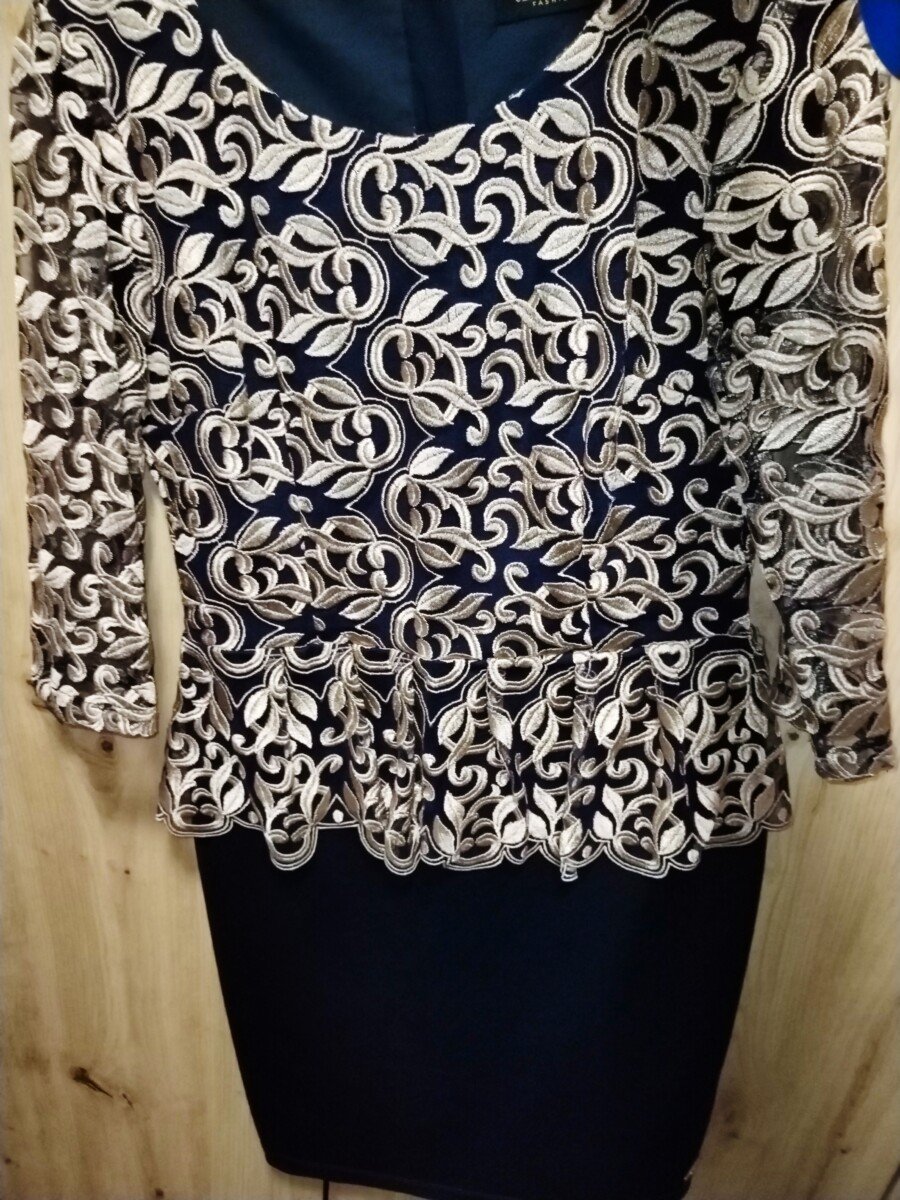 Elegantna haljina teget sa zlatnom debljom cipkom, vel 40, ali moze i kao 38 da prodje!